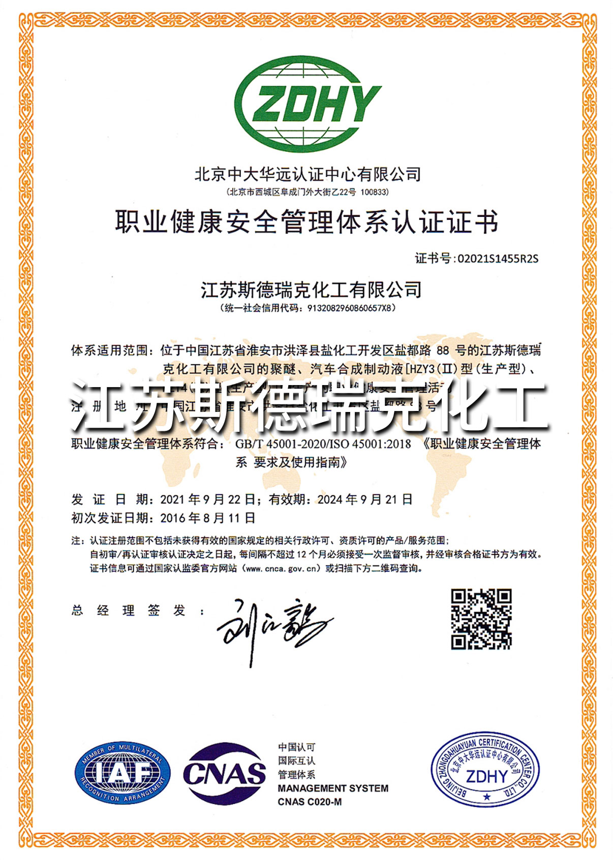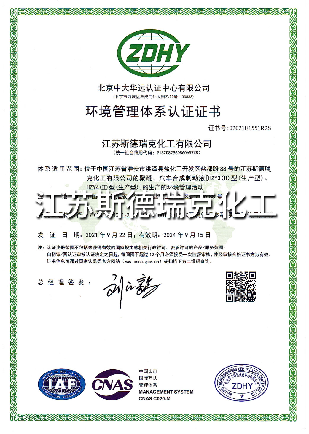 江蘇斯德瑞克化工有限公司成立于2002年,是一家集研發、生產和銷售一體化的“國家高新技術企業”,F有員工100多人,其中科技人員占20%以上;位于江蘇省淮安市鹽化工園,占地面積180畝,建筑面積達38000多平方米。